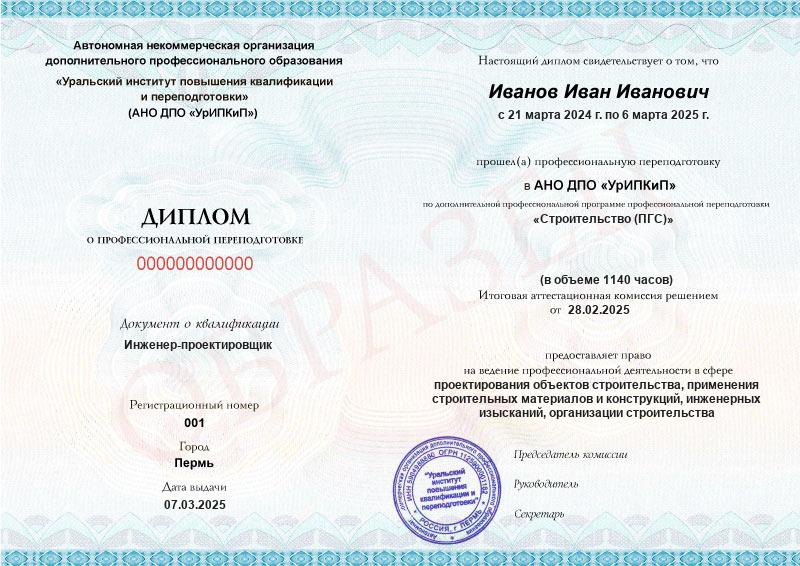 • Профессиональная переподготовка в сфере строительства (ПГС) с выдачей диплома.