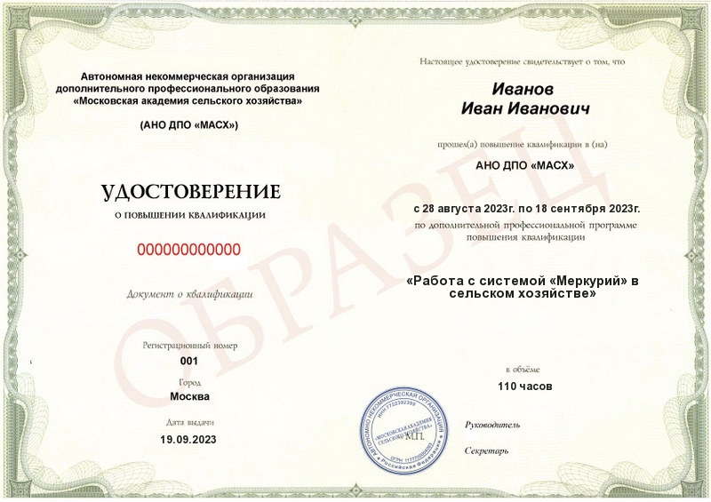 Курс обучения Работа с системой «Меркурий» в сельском хозяйстве (110ч)