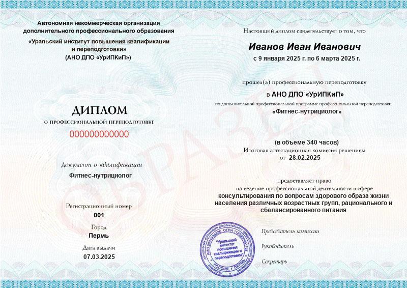 - Образец диплома о профессиональной переподготовке.