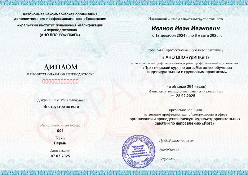 Да, дипломы и удостоверения оформляются в соответствии с действующим законодательством РФ. Документы печатаются на специальных бланках, заверяются печатью АНО ДПО «УрИПКиП».