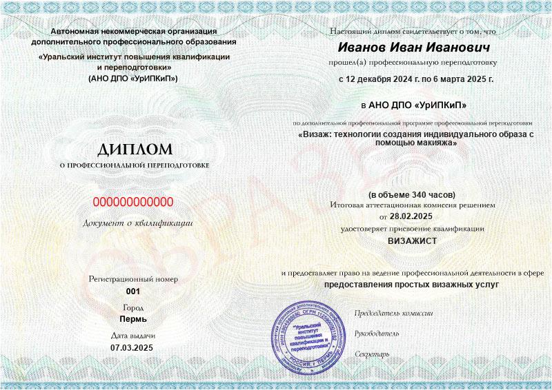 Да, дипломы и удостоверения оформляются в соответствии с действующим законодательством РФ. Документы печатаются на специальных бланках, заверяются печатью АНО ДПО «УрИПКиП».
