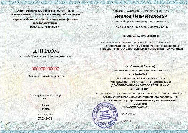 Да, дипломы и удостоверения оформляются в соответствии с действующим законодательством РФ. Документы печатаются на специальных бланках, заверяются печатью АНО ДПО «УрИПКиП».