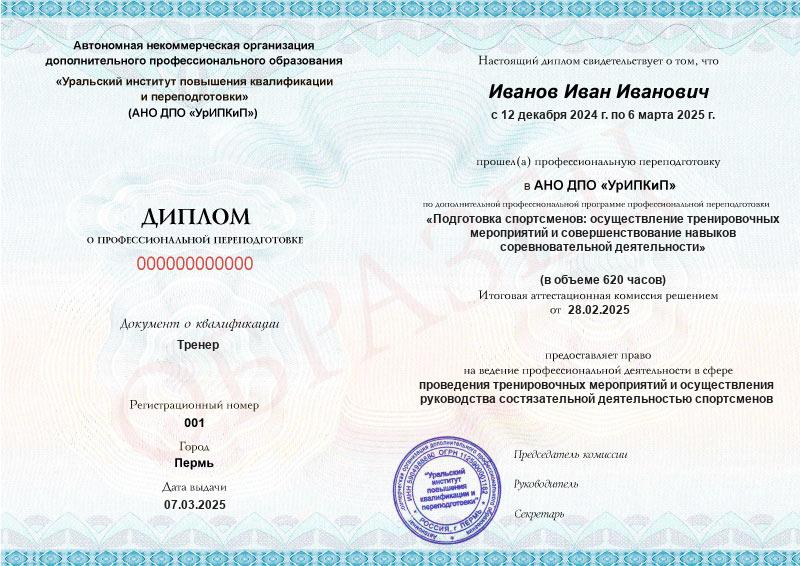 Курс обучения Подготовка спортсменов: осуществление тренировочных мероприятий и совершенствование навыков соревновательной деятельности (620ч)