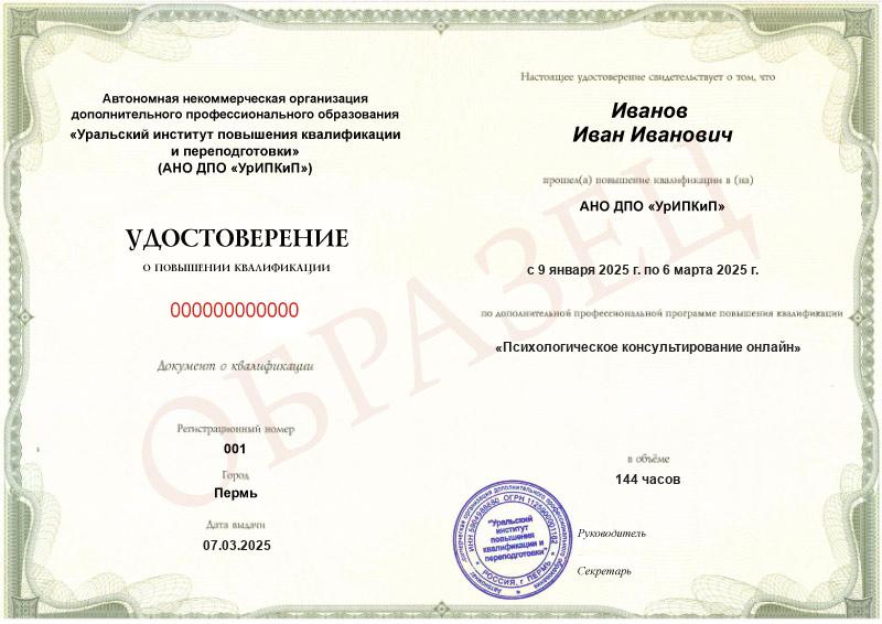 • Повышали квалификацию в АНО ДПО «УрИПКиП» – вам будет выдано удостоверение.