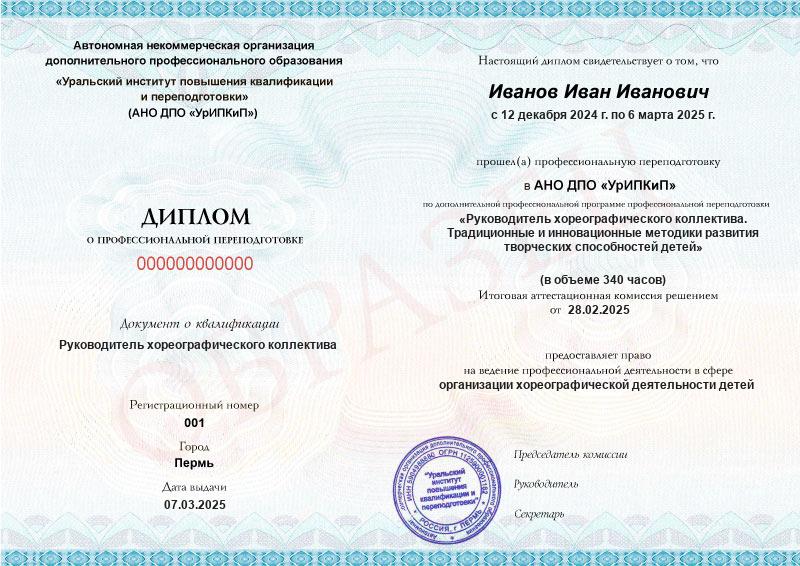 Руководитель хореографического коллектива. Традиционные и инновационные методики развития творческих способностей детей (340ч)