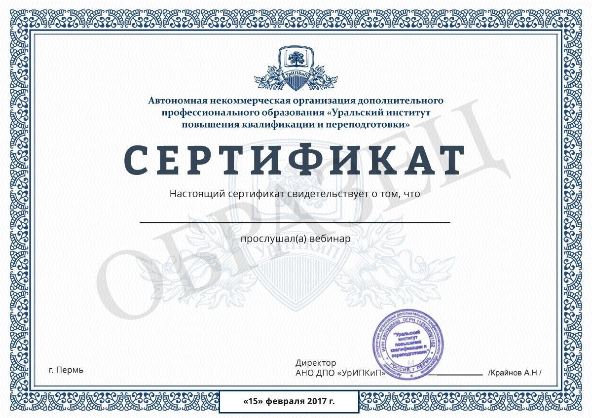 Дополнительно наши Слушатели могут получить сертификат за просмотр вебинаров