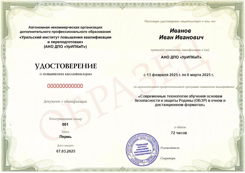 • Повышали квалификацию в АНО ДПО «УрИПКиП» – вам будет выдано удостоверение.