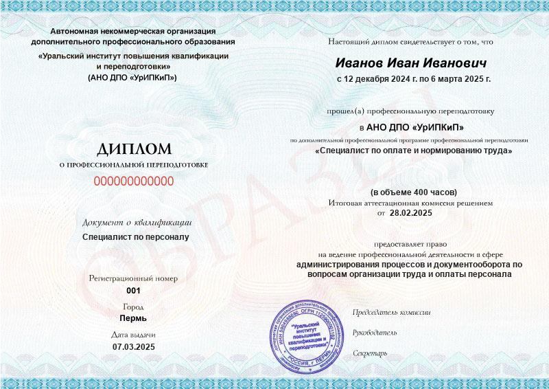 Добрый день! Я проходила профессиональную переподготовку Специалист по оплате и нормированию труда. Курс достаточно обширный и информативный. Отдельная благодарность институту за возможность продления срока обучения, так как я работаю и не смогла вложиться в регламентное время курса и мне была предоставлена возможность продления периода обучения.