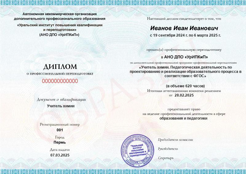 Курс обучения Учитель химии. Педагогическая деятельность по проектированию и реализации образовательного процесса в соответствии с ФГОС (620ч)