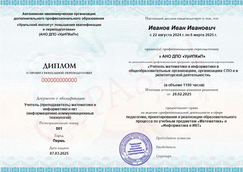 - Образец диплома о профессиональной переподготовке.